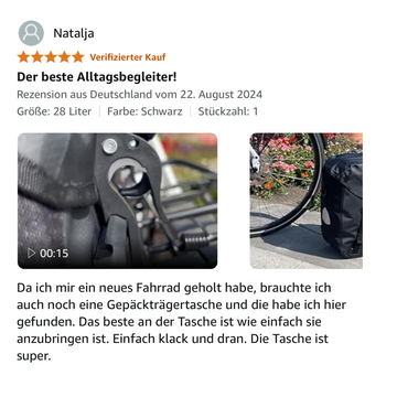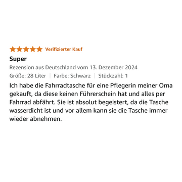"Ich bin absolut begeistert, da die Tasche wasserdicht und vor allem super komfortabel ist"